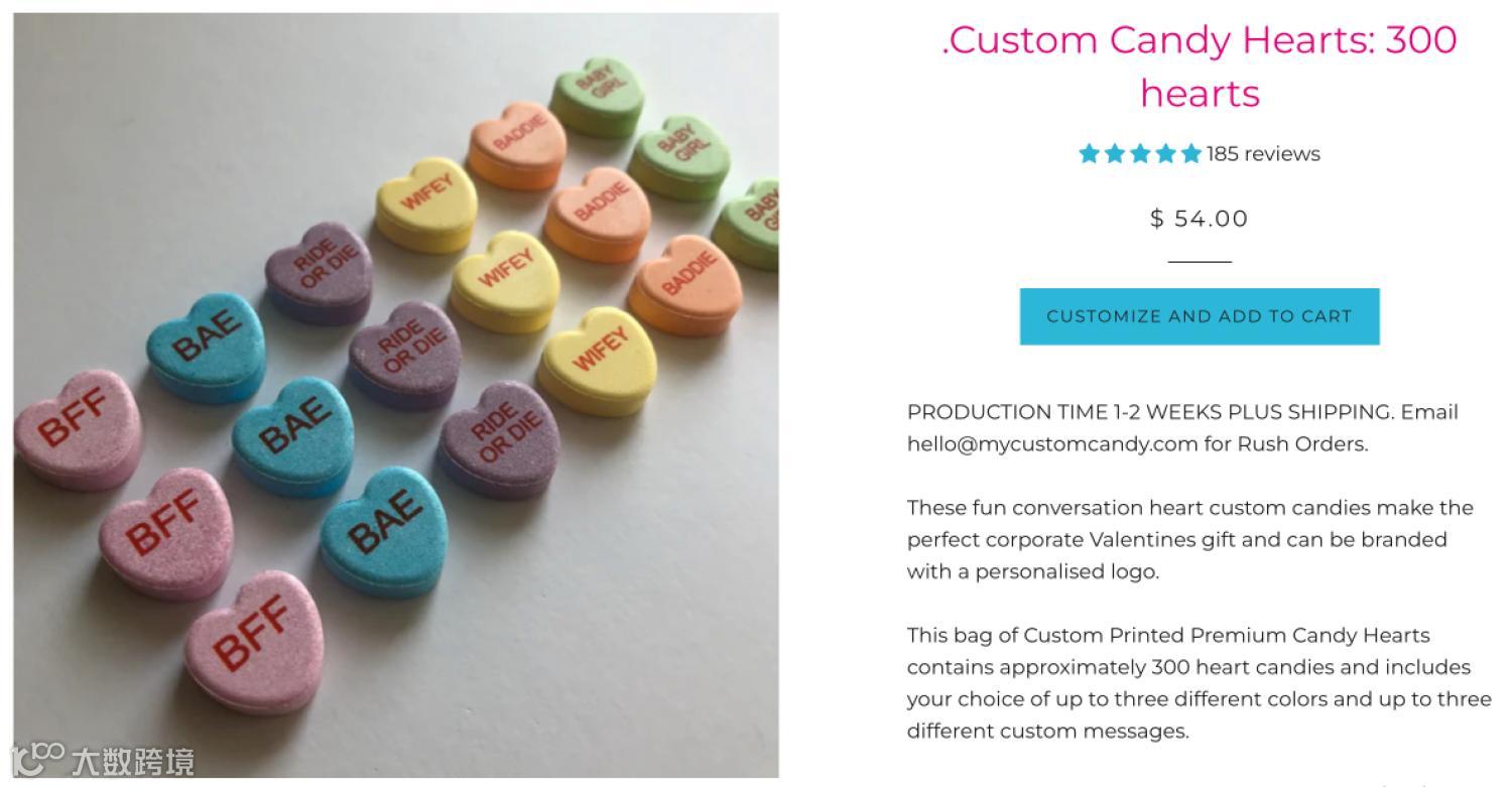 2013年,营销人员萨拉·汉宁顿(Sarah Hannington)想为客户寄送定制印刷的情人节糖心,几经搜索才说服一家厂商接单,却发现对方并无电商渠道。萨拉看准缺口,创立MyCustomCandy,专注印刷个性化糖心、薄荷糖、定制糖果袋与礼盒,并提供直邮服务。顾客可用自有文字和图片为婚礼糖果桌、企业推广或营销活动打造专属甜品,长期客户名单涵盖微软)、J.Crew、任天堂、丰田、Lady Gaga及金·卡戴珊等品牌与名人。