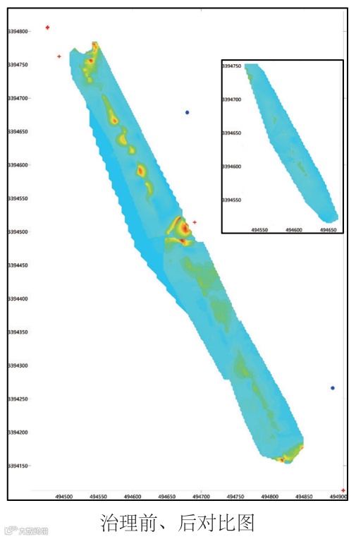 3、由于采用RTK进行水上测点定位,工作区域水深达30米,受施工条件的影响,水下测点可能存在1~2m的定位误差;