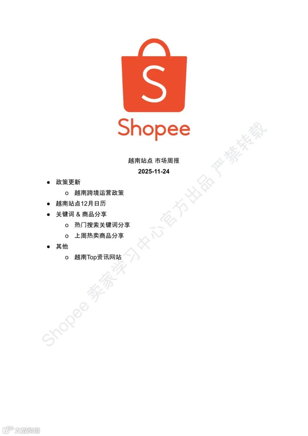 【Shopee市场周报】虾皮越南站2025年11月第4周市场周报