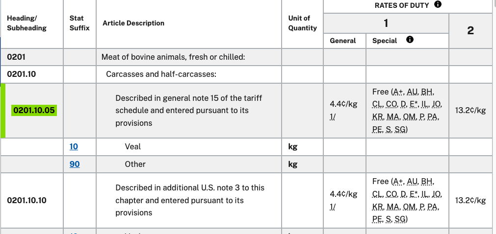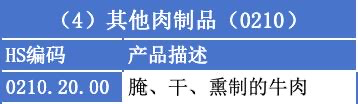 HS第02章(肉及食用杂碎):涉及28种产品,如牛肉(HS 0201.30.00)