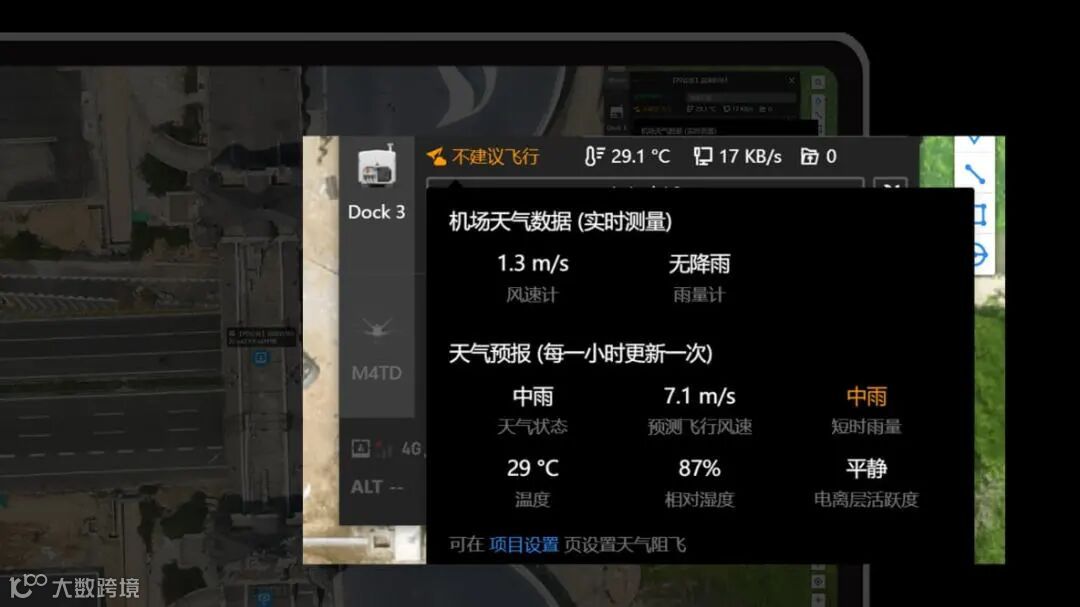 大疆司空 2 可实时获取飞行数据,完整记录飞行任务信息;如遇极端天气,系统将自动触发告警或短信提醒,保障设备安全;支持远程查看设备状态,远程调试设备。