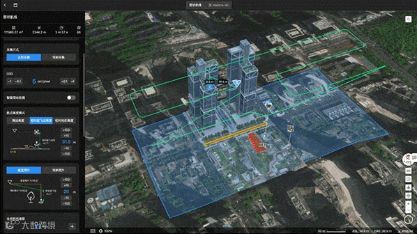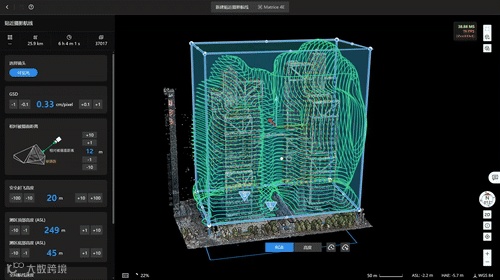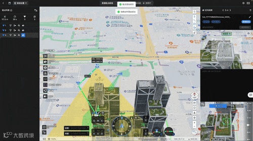支持在大疆司空 2 后台基于三维模型高效编辑复杂航点航线,或根据制定区域及对象规划巡逻航线。