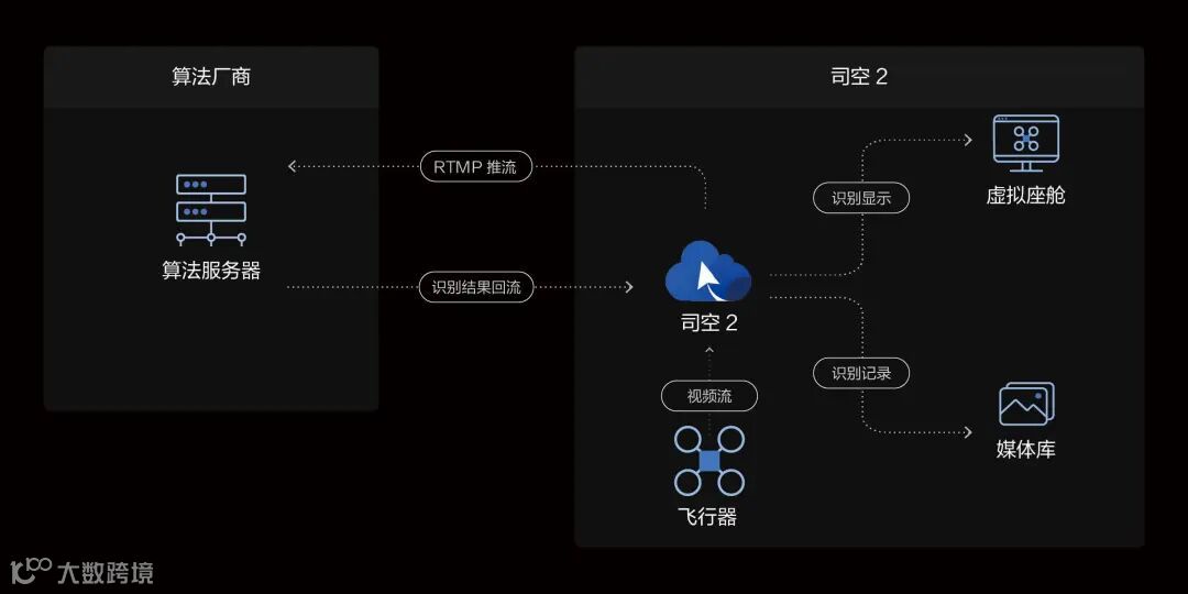 可通过“算法管理” 将第三方云端智能算法接入大疆司空 2,虚拟座舱可即时调用第三方云端智能算法和实例。