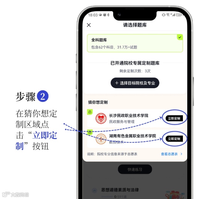 想精准备考,可通过潇湘高职单招app定制院校专属题库: