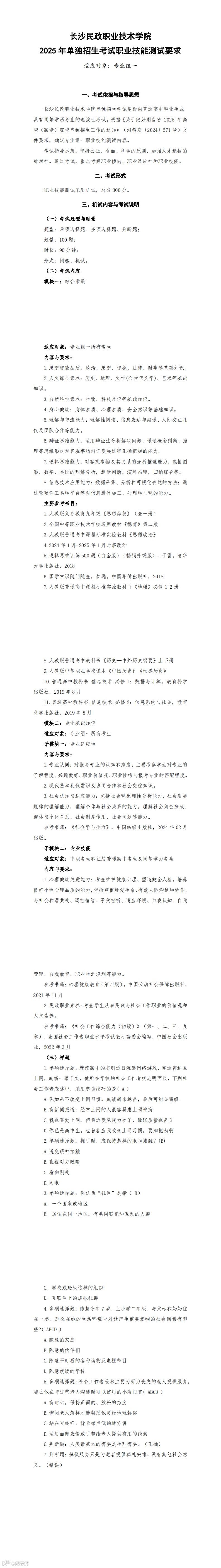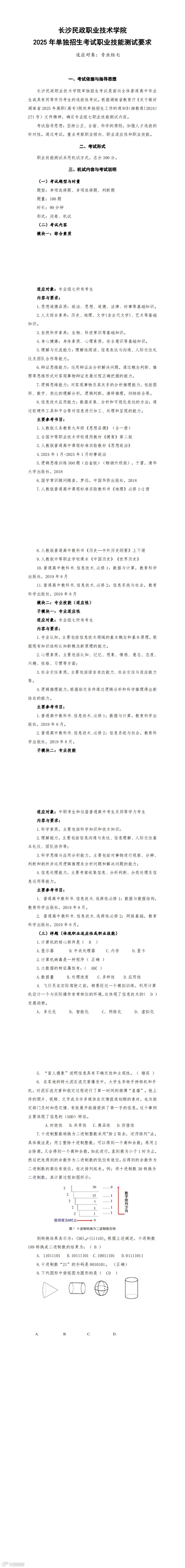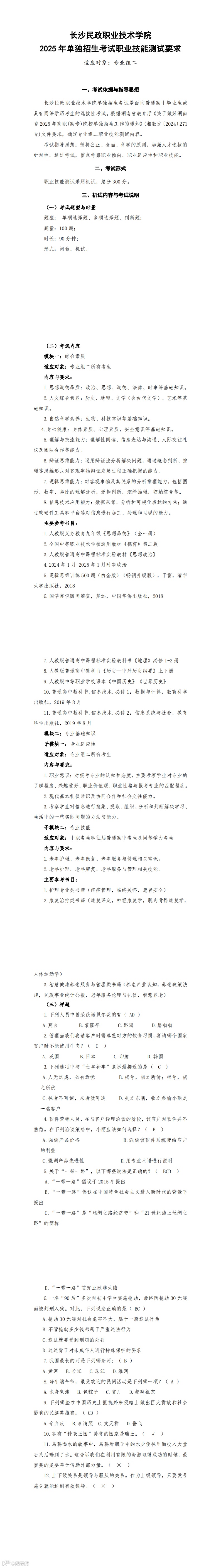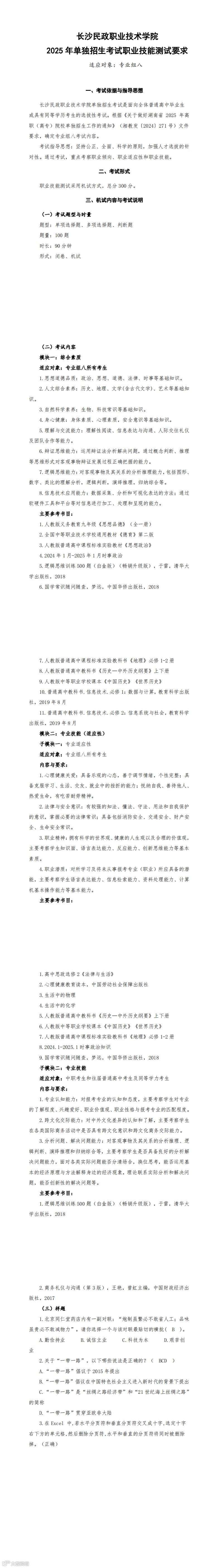 2025 年单独招生考试大纲