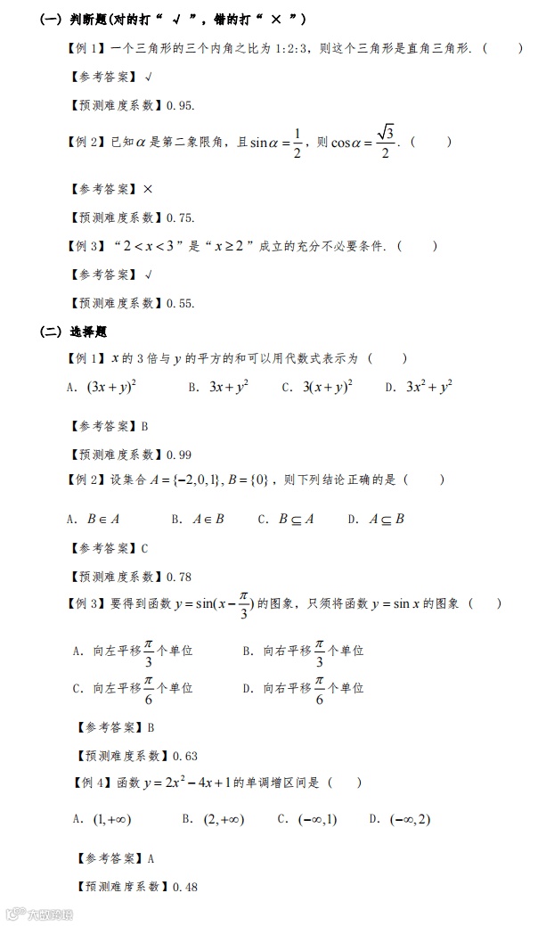 注:预测难度系数=该题目所有考生的平均得分/该题目的满分。