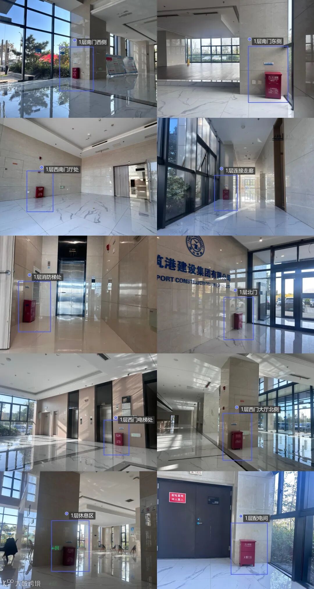 灭火器位于电梯间两侧