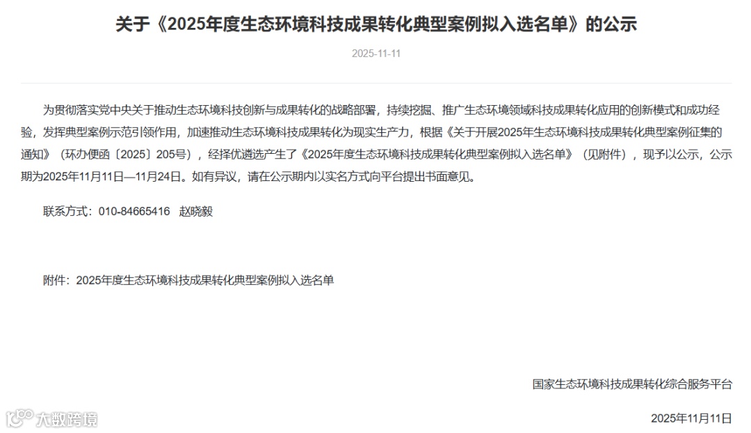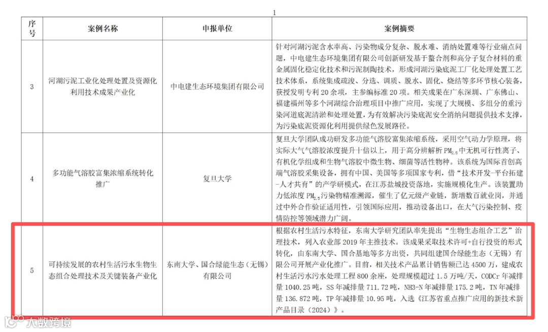 近日,国家生态环境成果转化服务平台发布《关于2025年生态环境科技成果转化拟入库案例名单的公示》。东南大学与国合绿能生态(无锡)有限公司,凭借“可持续发展的农村生活污水生物生态组合处理技术及关键装备产业化”成果案例,成功入选该国家级案例库。