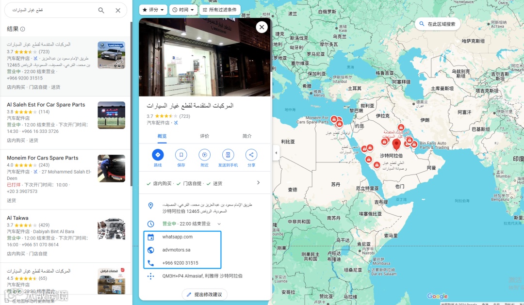 这是平时的谷歌地图搜索出来的数据,要一个一个点开查看联系方式,很花时间。我平时很喜欢用这款接口谷歌地图的搜索工具