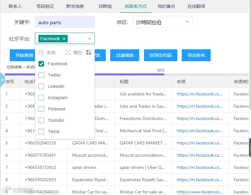 这个是可以直接搜索FB上面灯具客户的whatsapp
