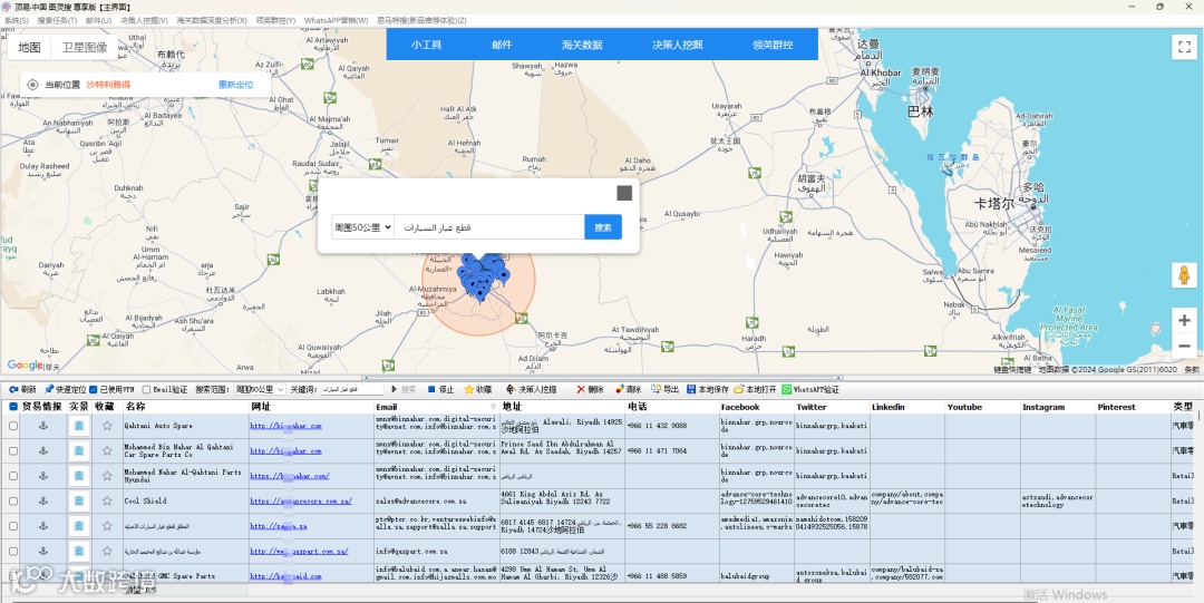 可以一键提取区域内 所有相关客户 以及 联系方式,涵盖,客户的公司名字、网址、地址、电话邮箱。