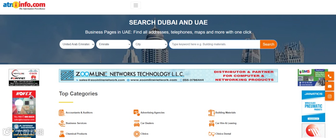 阿联酋比较受欢迎的名录,可以查当地32万家企业,包括名称,地址,电话,网址等信息