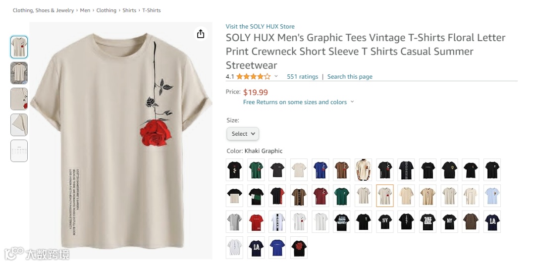 美国站“Clothing, Shoes & Jewelry”类目:最高排名17,预估月销量97050件。