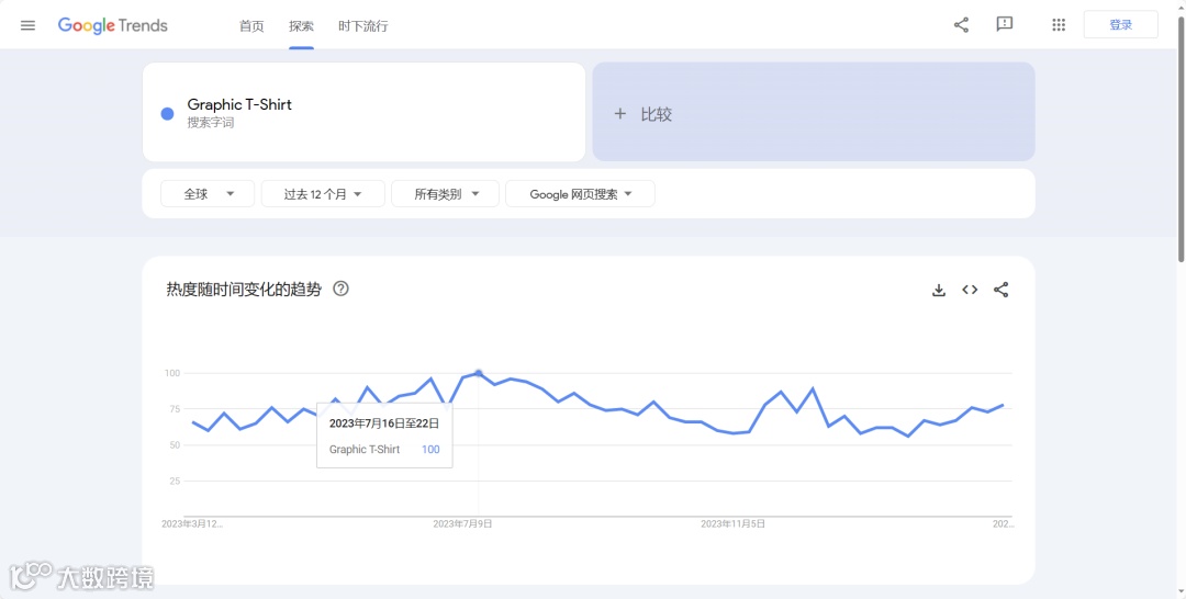 “T恤”相关搜索词热度 近五年整体呈持续浮动增长,全年热度较高。需求从每年2月起逐渐增长,7-8月达到峰值,属于明显季节性产品,热度集中于北美和欧洲地区。