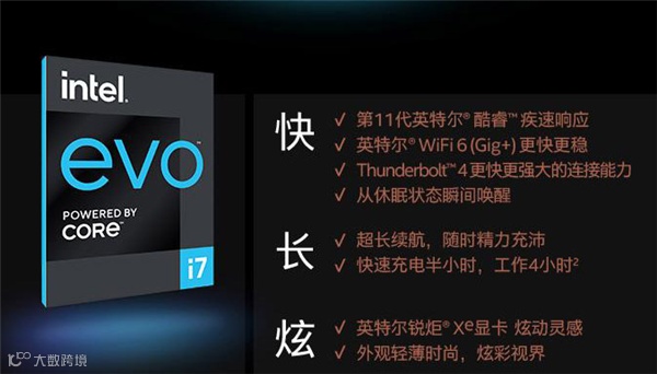 官方将EVO认证的核心优势总结为“快、长、炫”三个方面,覆盖性能响应、Wi-Fi 6、Thunderbolt 4、续航、快充、Iris Xe核显及外观设计等全方位体验[k]。