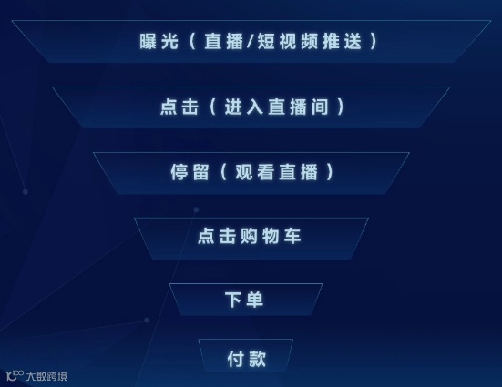 付费曝光后,直播间的流量会经历层层漏斗,从直播间和短视频推送给用户、到用户点击进入直播间、再到观看直播并在购物车找到心仪的商品、再到最终成交,每一个环节都可能存在流失。在获取足够付费流量的同时,也在漏斗环节做好了各个指标优化,能够进一步获得更多流量。