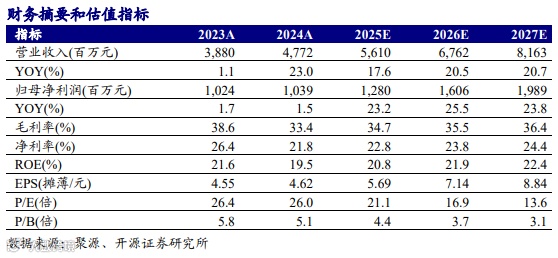 公司发布2025年三季度报告。(1)前三季度,公司实现营收39.44亿元,同比+14.69%;归母净利润8.88亿元,同比+14.58%;扣非归母净利润8.67亿元,同比+15.35%;销售毛利率32.88%,同比-1.24pcts;销售净利率22.53%,同比-0.01pcts。(2)第三季度,公司实现营收14.45亿元,同比+9.31%,环比+11.52%;归母净利润3.18亿元,同比+8.69%,环比+4.31%;扣非归母净利润3.11亿元,同比+6.87%,环比+4.76%;毛利率32.53%,同比-1.63pcts,环比-2.20pcts;净利率21.98%,同比-0.15pcts,环比-1.60pcts。(3)公司三季度收入和利润同比增速较一季度和二季度有所下滑,三季度毛利率水平延续上半年的同比下滑趋势,我们认为主要与公司产品结构变化和行业竞争趋紧有关。公司是全球薄膜电容行业领军企业,未来有望长期受益于光储、风电、电动汽车等新能源行业的快速增长,同时公司积极开拓固态电池、机器人、AI服务器电源等新兴应用领域,有望打造更多增长曲线,我们略下调公司盈利预测,预计2025/2026/2027年归母净利润为12.80/16.06/19.89亿元(原值为13.72/16.60/20.15亿元),当前股价对应PE为21.1/16.9/13.6倍,维持“买入”评级。