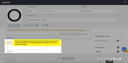 • List Price:制造商建议零售价(MSRP)。若商品在过去90天(季节性商品180天)内以该价成交或被同行高价销售,沃尔玛将以其为定价基准。