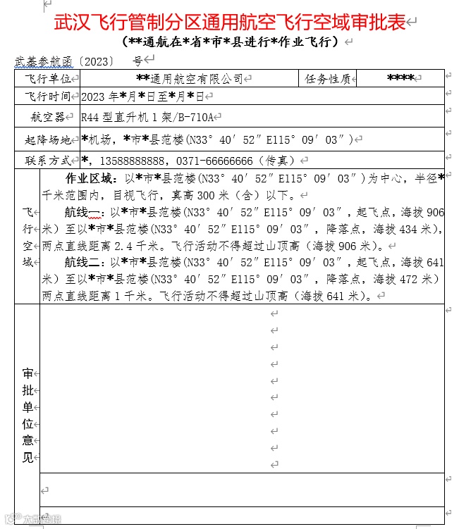 若飞行时间、路线变更,需重新提交申请并获得批准。