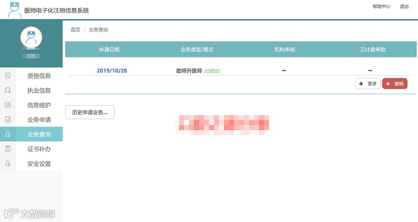 医疗机构需登录医疗机构系统(注意这个时候登录的是机构的),及时确认医师的业务申请,并打印相关申请表。需要注意:医师电子化注册(机构版)下图