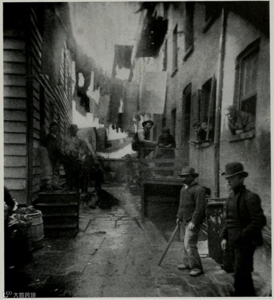 © 里斯:《匪徒巢穴》(Bandits' Roost),纽约马尔伯里街59号,1888年。底片藏于纽约市博物馆;照片印刷品由亚历山大·阿兰德提供