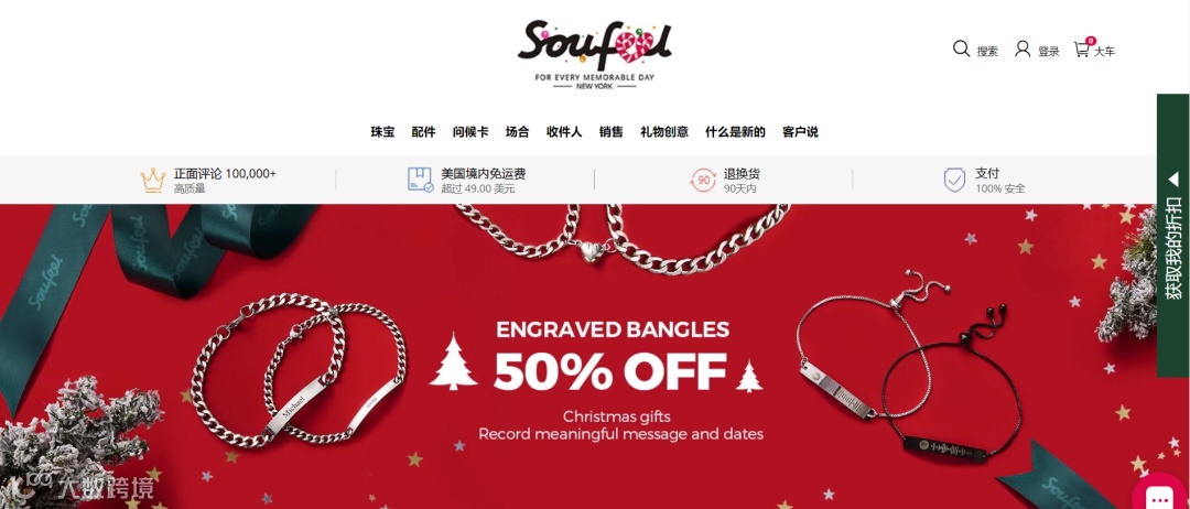 Soufeel独立站整体设计简洁大方,情感氛围浓厚,网站主题随海外重大节日更换,如,圣诞节来临前,Soufeel网站会展现大量的圣诞元素。