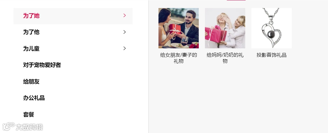 Soufeel独立站按照收件人、场合、珠宝、配件、礼物创意等将商品清晰分类,消费者可以根据需求快捷选购,促进店铺转化,增加品牌好感度。
