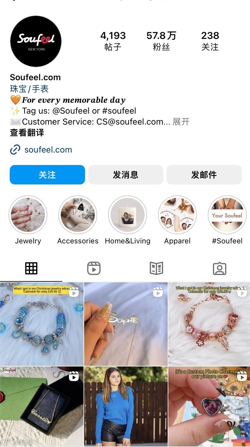 Soufeel目前在TikTok、Instagram、Facebook、YouTube、Pinterest等社交媒体上分别建立品牌账号,并在Instagram拥有57.8万粉丝、Facebook上拥有7.7万粉丝。