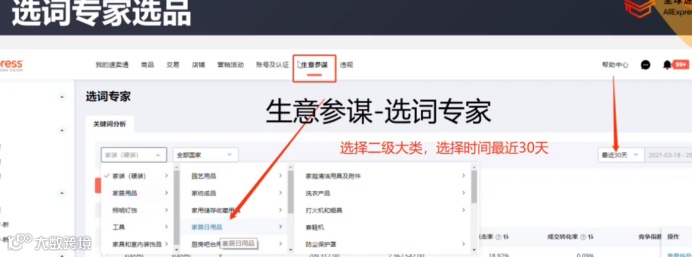 在卖家后台设有“生意参谋”板块,卖家可以充分利用此板块,来了解近期速卖通平台各类目的销售趋势,访问数量,分析市场大盘。