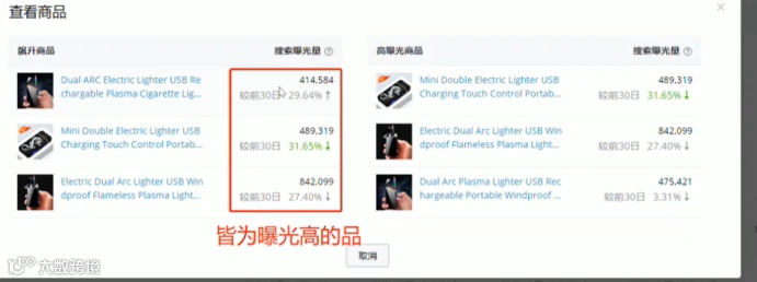 5.点击“查看商品”了解具体哪款产品曝光度较高,较为热卖。