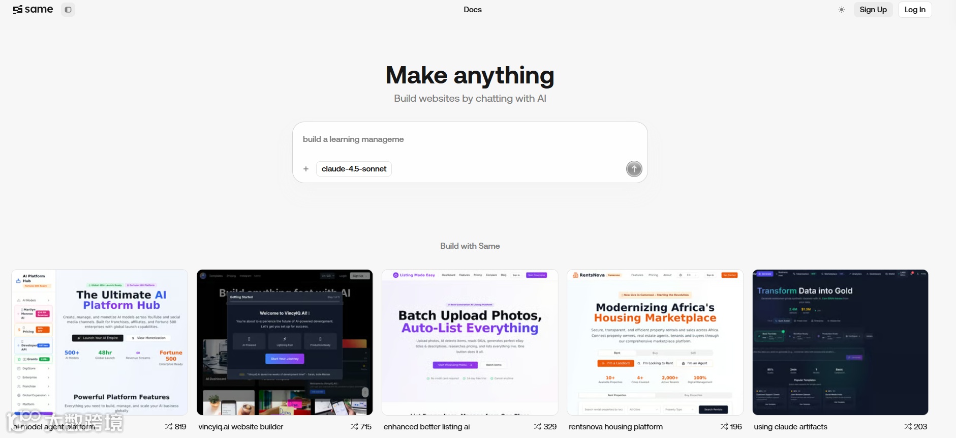 same.new + Cursor:复刻网站的核心工具,先在 same.new 输入优质网站链接,自动生成基础框架,再用 Cursor 微调细节(比如加推广链接),10 分钟搞定,比 Carrd 更贴合联盟审核要求。