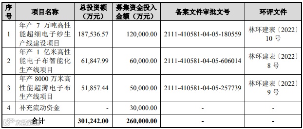 公司原计划公开发行不超过166,321,600股,占发行后总股本比例不低于10%且不超过25%,预计融资26亿元[[k]]。募集资金拟投向年产7万吨高性能超细电子纱、年产1亿米高性能电子布智能化生产线、年产8000万米高性能超薄电子布等项目[[k]]。