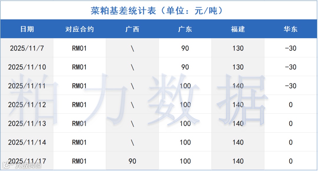 现货方面,尽管豆粕盘面价格下跌约50元/吨,但现货市场表现出较强韧性,基差普遍上涨20-40元/吨。其主要驱动来自三方面:一是大豆及豆粕库存双双小幅下降,缓解了部分供应压力;二是未执行合同量减少,促使贸易商主动挺价;三是沿海地区一口价跌至3000元/吨附近,激发了下游企业的阶段性补库需求。值得注意的是,远期成交显著放量60万吨,且全部为明年一季度合同,表明市场对后续供应偏紧存在一定预期,并开始提前布局远月头寸。