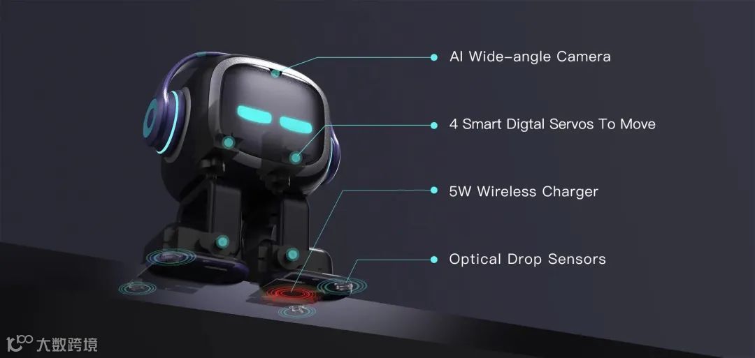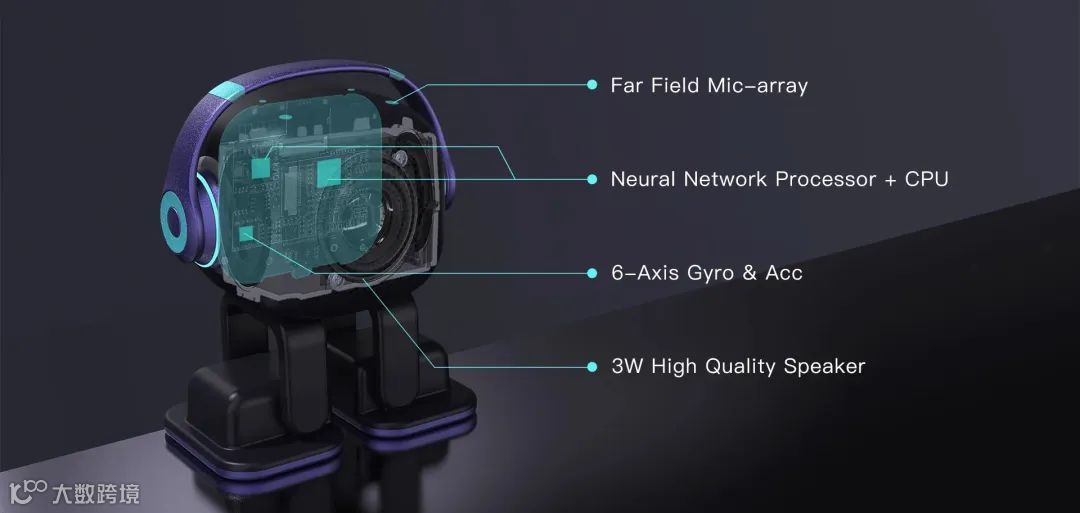 1. 核心处理器与传感器 EMO 内置神经网络处理器和 CPU,为其强大的智能运算和多任务处理能力提供了坚实的基础。配合 6 轴陀螺仪和加速度计,它能够精准感知自身的运动状态和周围环境变化,确保在桌面上自由移动时的稳定性和安全性。此外,光学跌落传感器的配备使其能够有效避免从桌面掉落,保护自身安全。 -