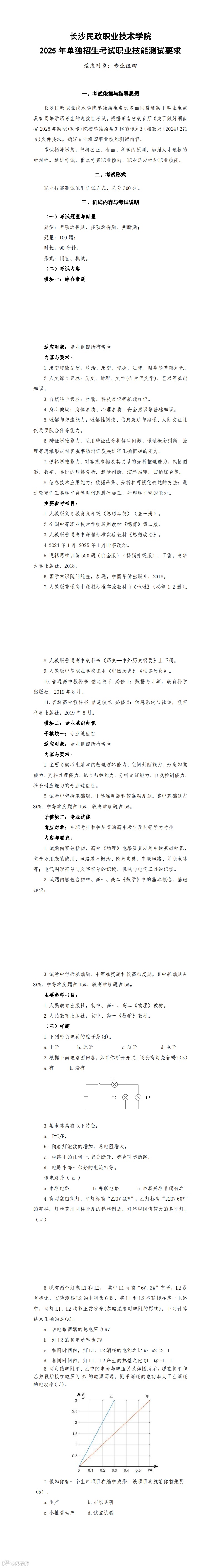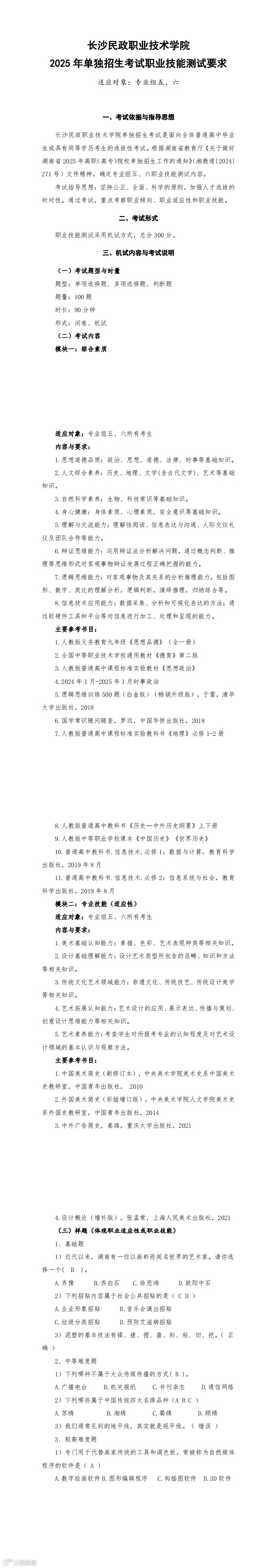 2025 年单独招生考试大纲
