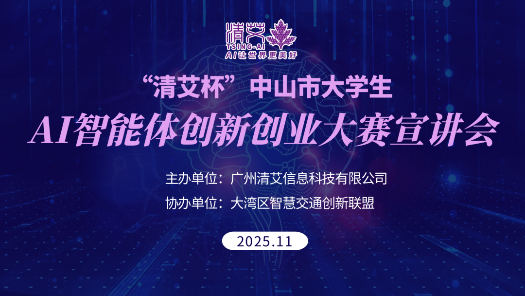 “清艾杯”中山市大学生AI智能体创新创业大赛由广州清艾信息科技有限公司主办、大湾区智慧交通创新联盟协办,以“智创未来,赋能产业”为核心,搭建中山市高校AI智能体技术交流与成果转化平台,推动智能体技术在各类场景的创新应用,发掘并培养具备AI开发能力与创新创业思维的高素质人才,助力中山市数字经济产业高质量发展。