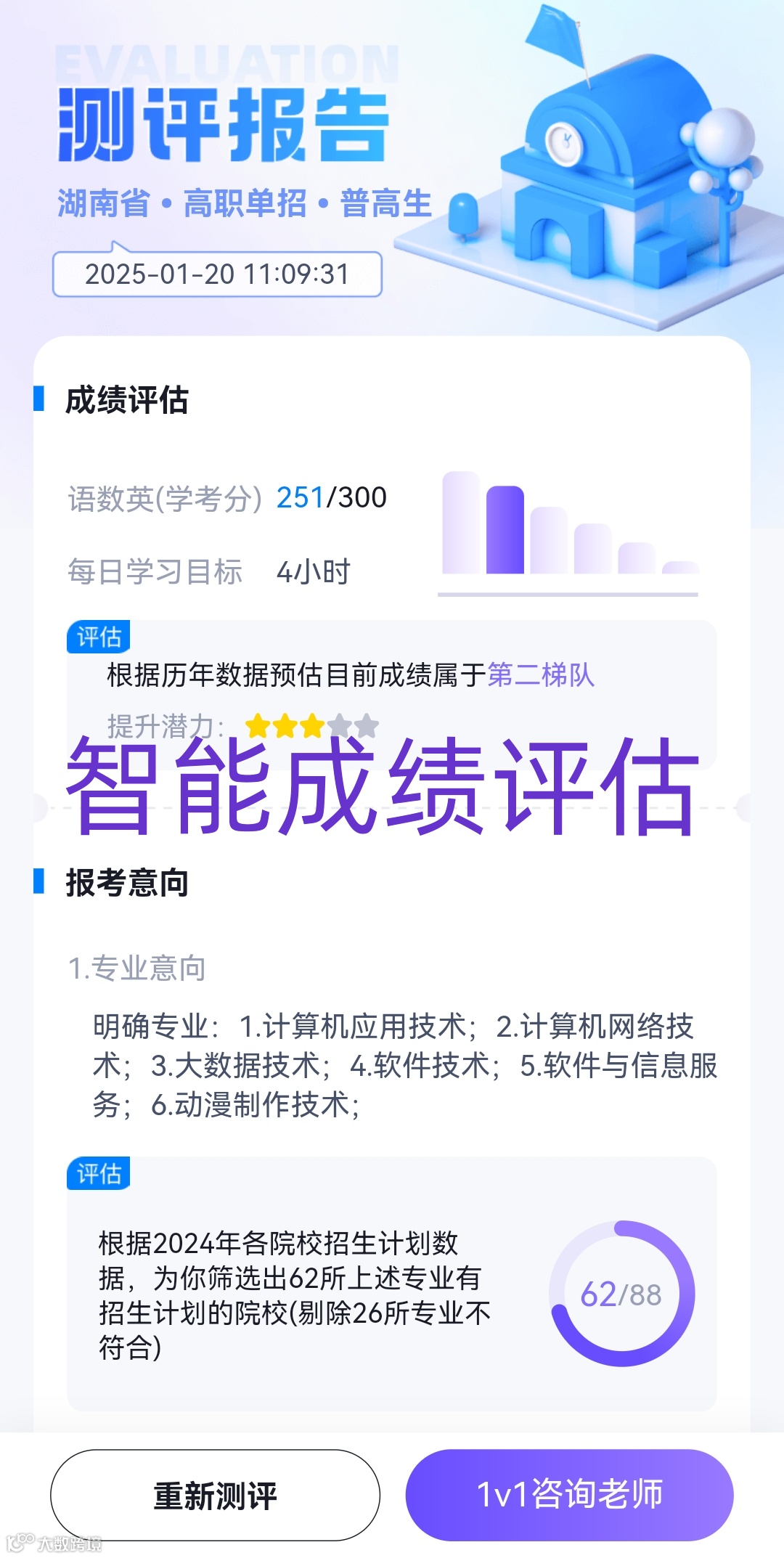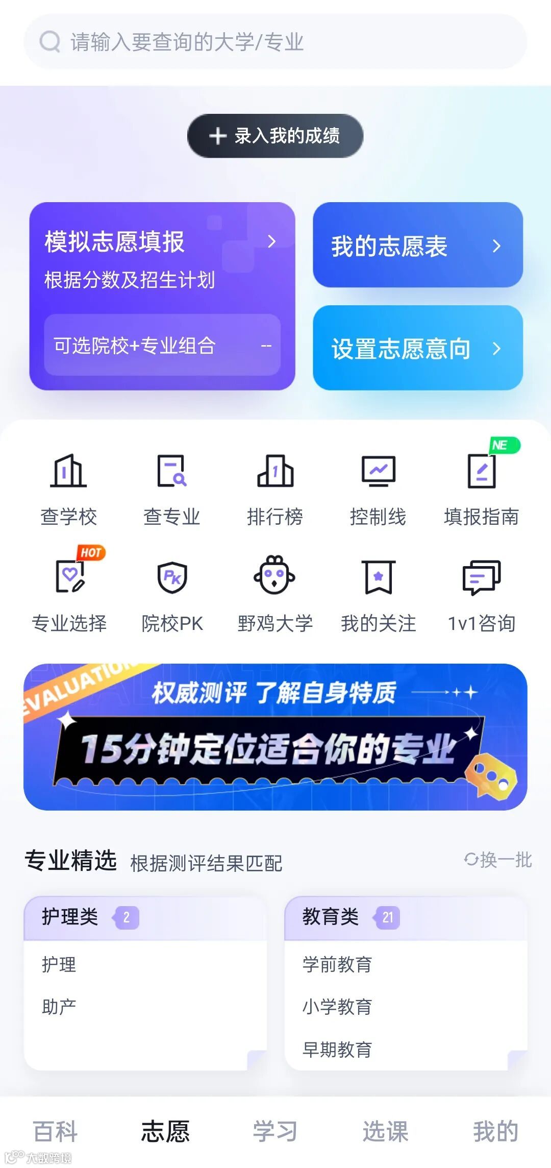 智能测评功能快速匹配学校专业、专业选择测评等功能