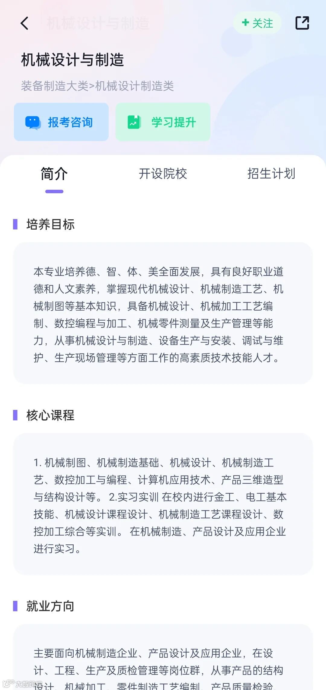专业库:查看各专业真实就业数据和课程设置