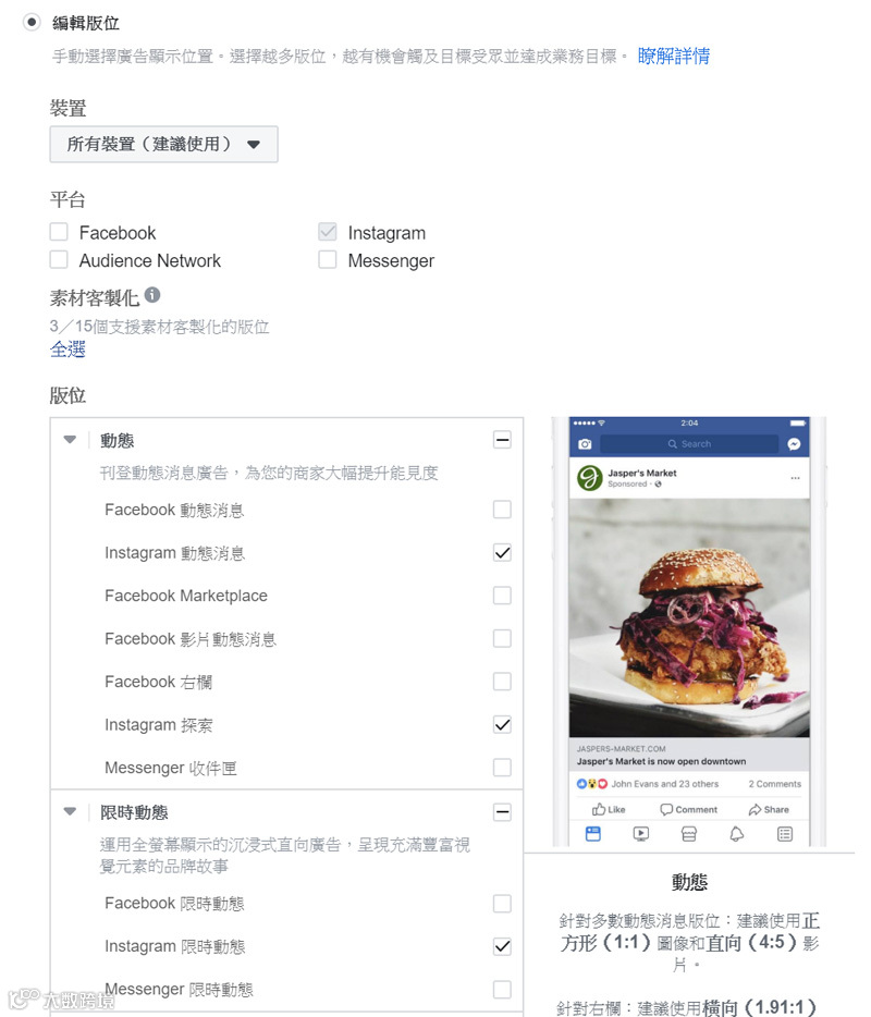 需要明确的是,Instagram广告与Facebook广告使用同一套投放系统,区别仅在于展示位置的选择。