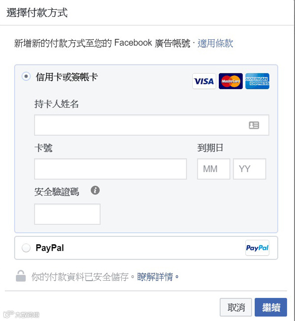 首次投放的用户需提前设置付款方式,审核通过后广告才会开始展示。(请确保绑定信用卡信息与个人账户一致,避免因验证问题导致账户受限)