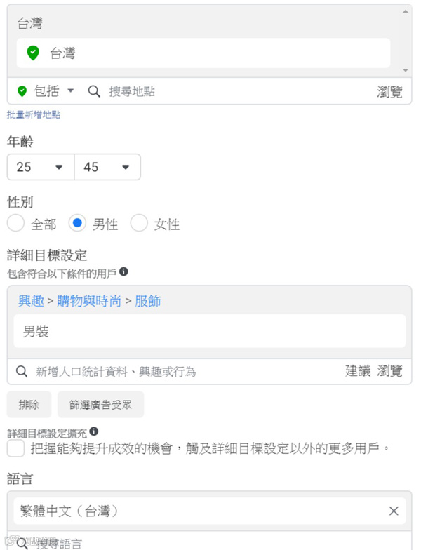 需特别注意语言设定:错误设置可能导致广告大量展示给在台外籍人士,这是移动端投放常见问题。