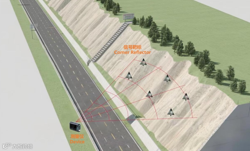 本案采用地基微波干涉雷达(如 FMCW 调频连续波雷达),通过发射微波信号并接收边坡表面反射信号,利用干涉原理计算信号相位差,进而反演边坡表面水平与垂直位移量。其测量精度可达亚毫米级,监测距离覆盖 50-1000 米,具备强抗干扰能力,不受雨、雾、沙尘等恶劣天气影响,可实现 24 小时连续监测;同时无需在边坡上布设任何设备,仅需在安全区域(如边坡对面山体、道路旁)架设雷达站,避免了在高风险边坡布设设备的安全隐患,尤其适用于地形复杂、人员难以抵达的高陡边坡(如悬崖边坡、矿山高陡边坡)及恶劣天气频发区域。此外,微波测量可对边坡进行面状监测,一次性覆盖数百平方米范围(极致成本优势),不仅能获取单个监测点数据,还能呈现边坡整体变形分布特征,弥补了 GPS 单点监测与 InSAR 宏观监测之间的 “中观面状监测” 空白,与其他技术协同形成 “宏观 - 中观 - 微观” 三层立体监测网络。