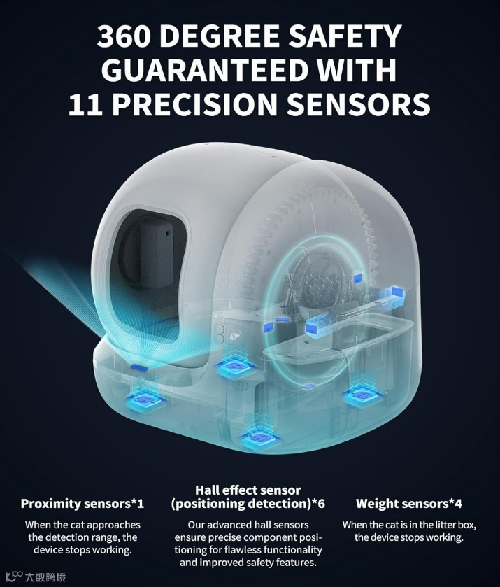 多猫检测:通过红外感应和重量感应器,能够识别不同体重的猫咪,智能调节清洁频率,避免打扰猫咪的正常使用。