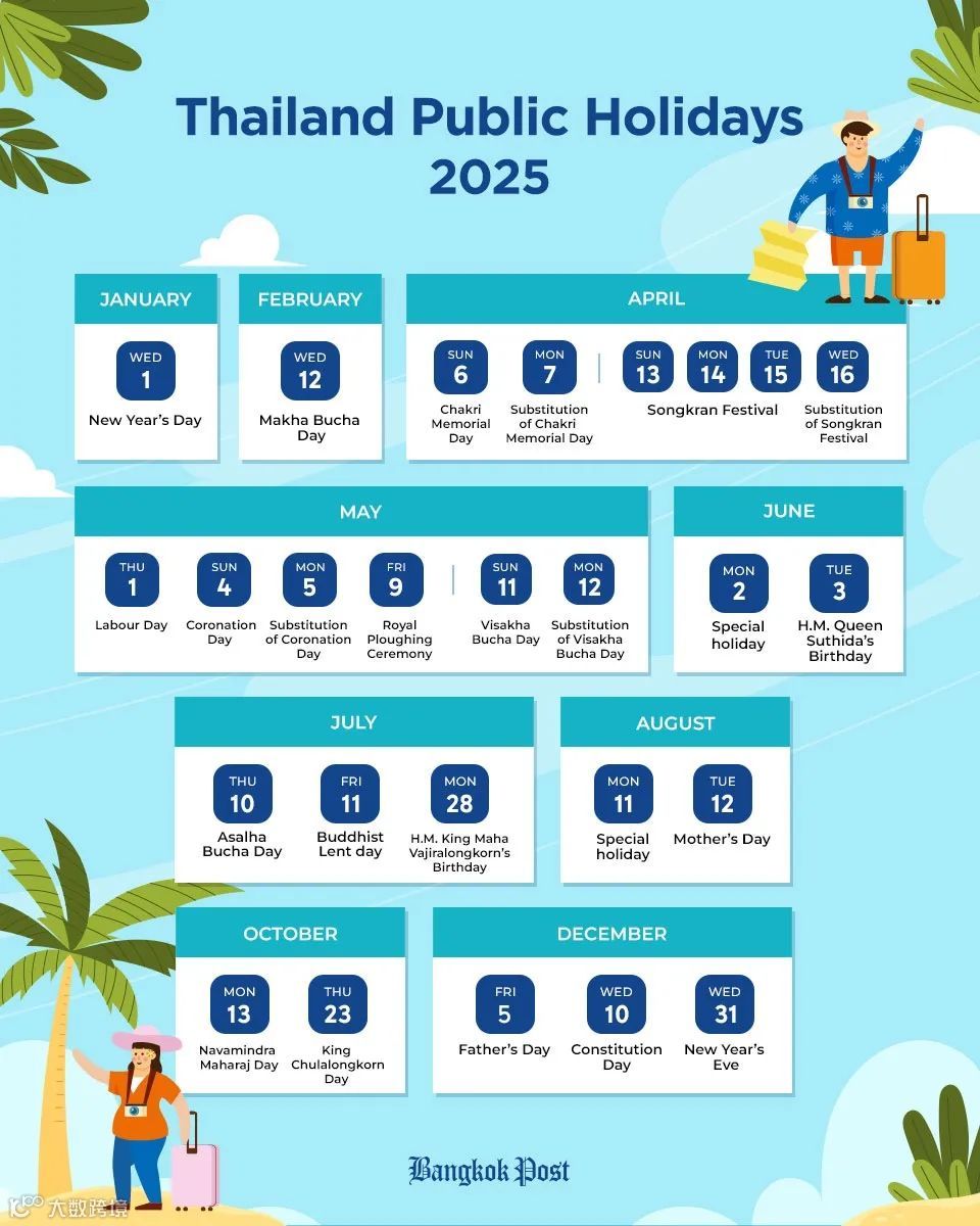 2025年泰国公共假期安排出炉:新增3天,共21天