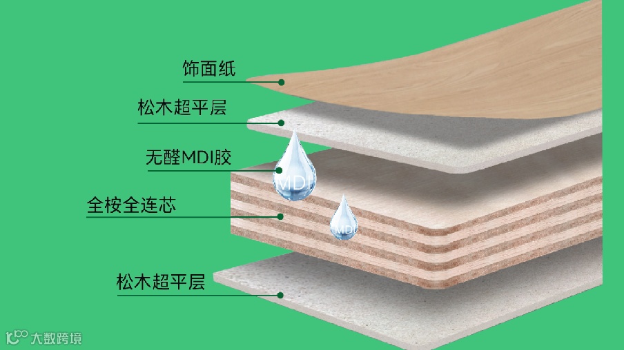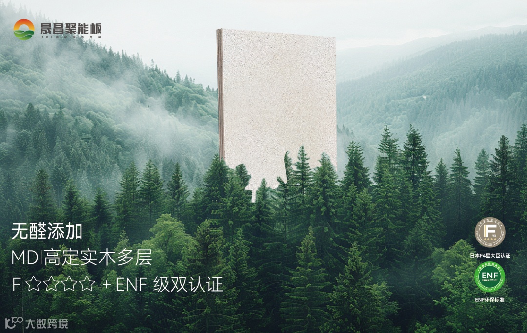 与万华化学联合研发,突破MDI多层板施胶技术独家授权,让晟昌聚能板一枝独秀,同时让聚能板防水防潮防开裂,性能更佳,超高环保等级,可达ENF无醛级
