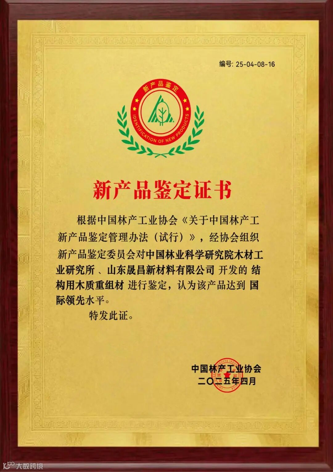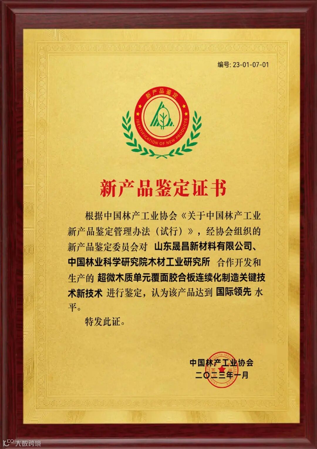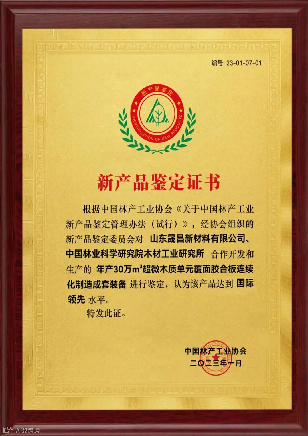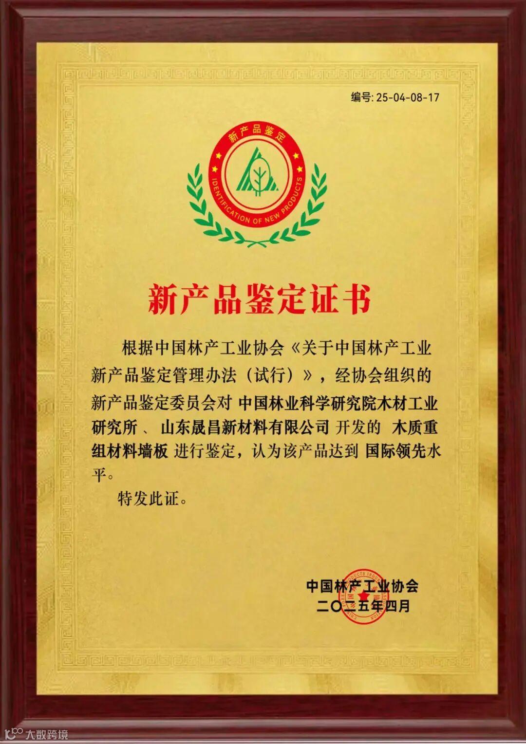 经中国林产工业协会专家鉴定,晟昌新材料目前有9项国际成果;