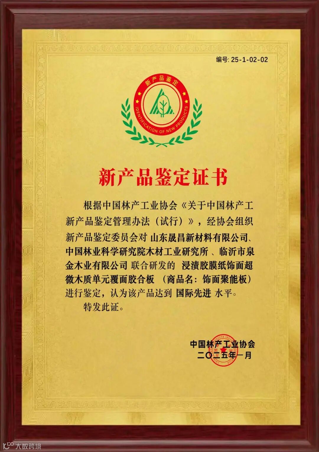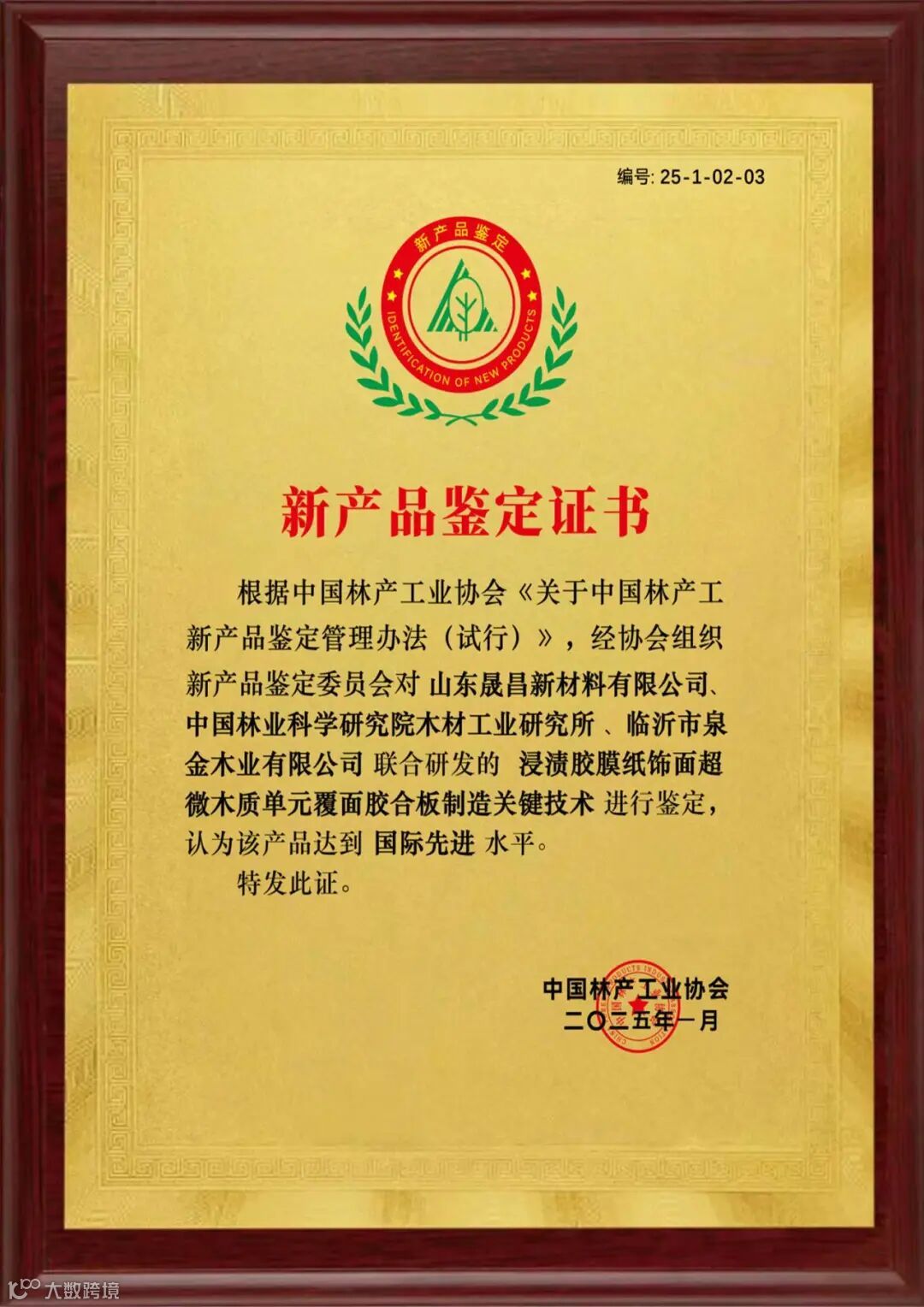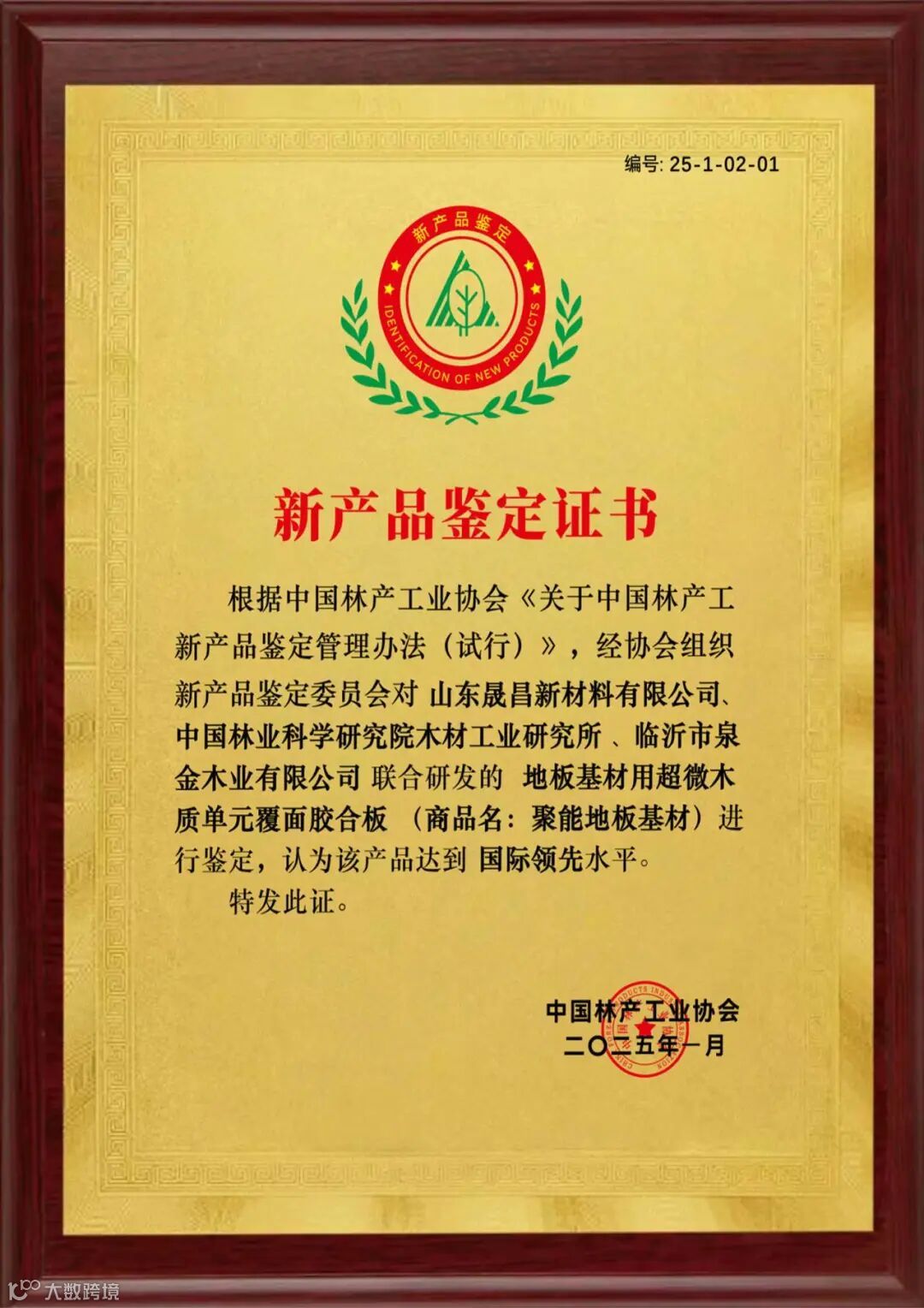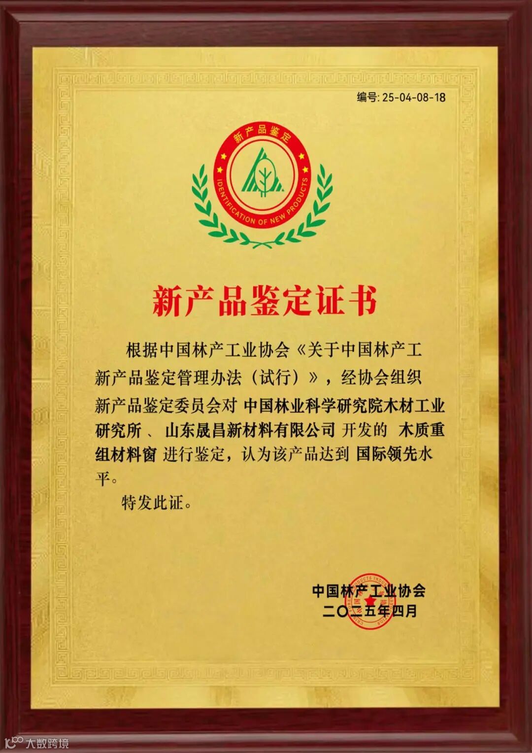 经中国林产工业协会专家鉴定,晟昌新材料目前有9项国际成果;