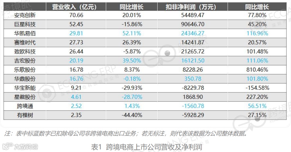 综合来看,安克创新、华凯易佰、赛维时代、吉宏股份实现营收和利润双增,且增幅均超过20%,是上半年表现最好的企业;华宝新能转盈为亏,跨境通、有棵树则仍陷于亏损泥潭,业绩分化明显。