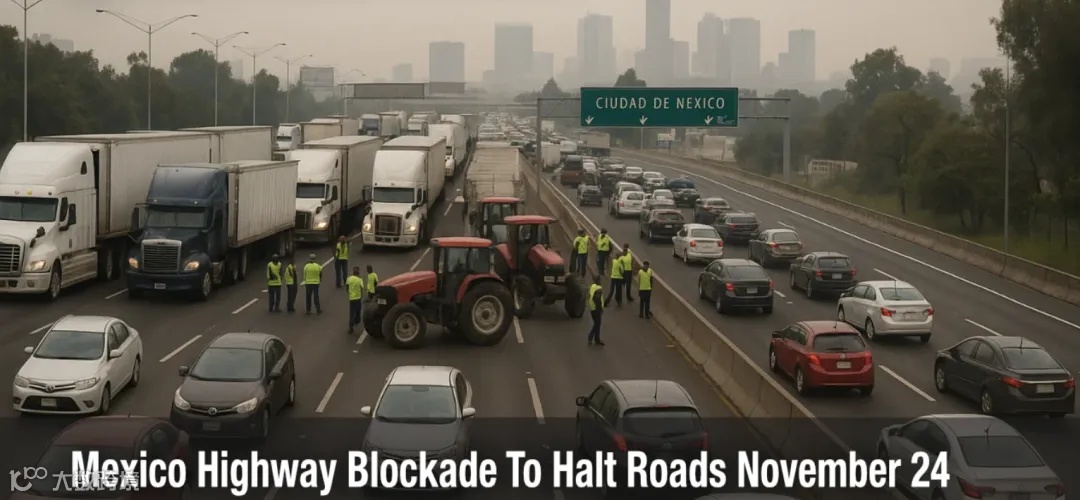 11月24日,墨西哥全国运输与农业大罢工如期爆发,墨西哥最重要的太平洋港口之一——曼萨尼约港宣布从当天凌晨5点起停止接收所有进口货物车辆。