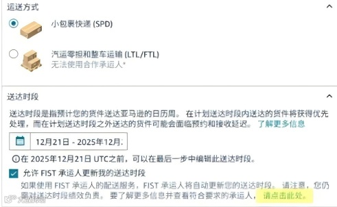 为优化卖家体验,亚马逊将不再在创建货件时以下拉列表形式展示FIST承运商名单,而是统一显示为 “FIST 承运人”(英文界面为“FIST Carriers”)。